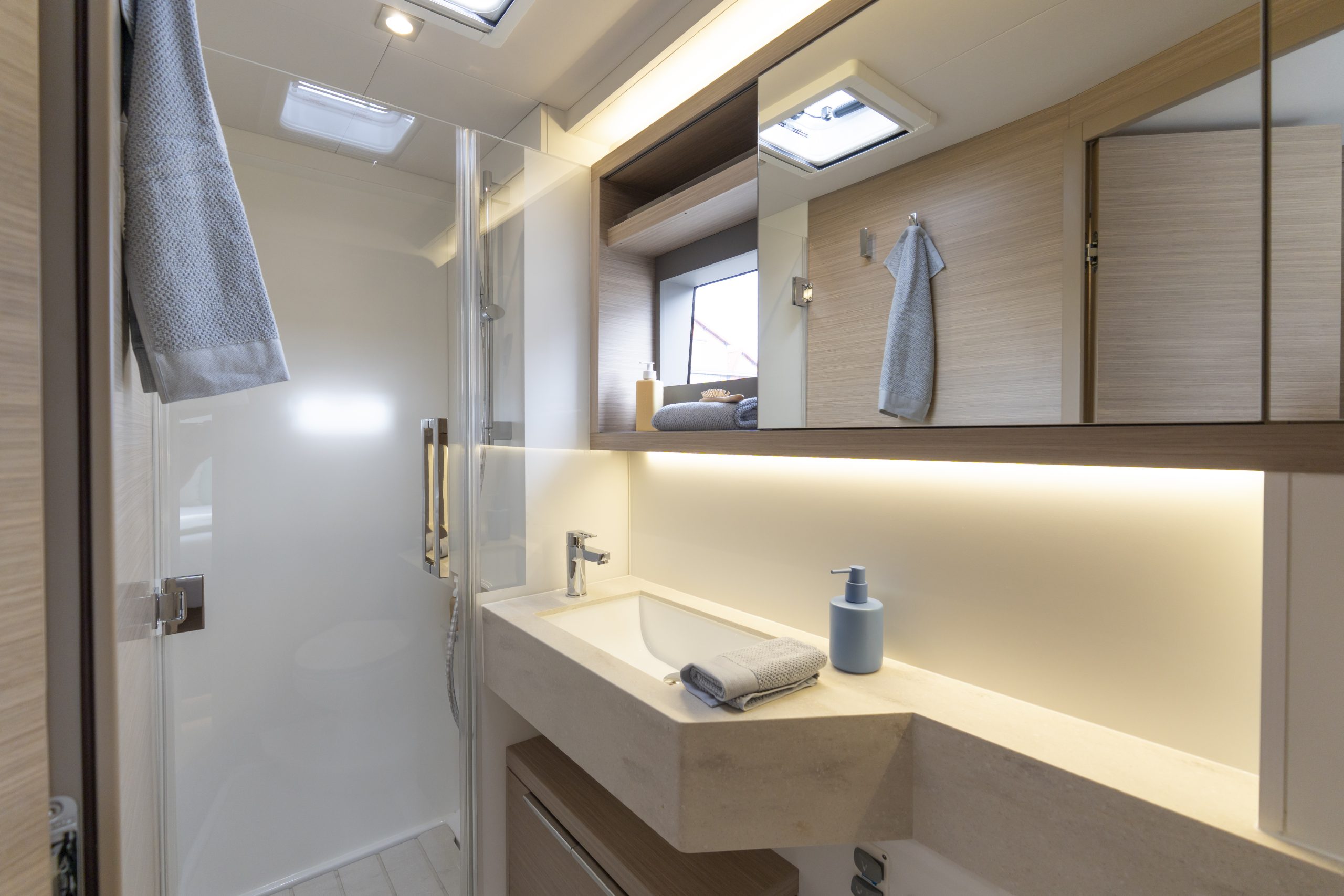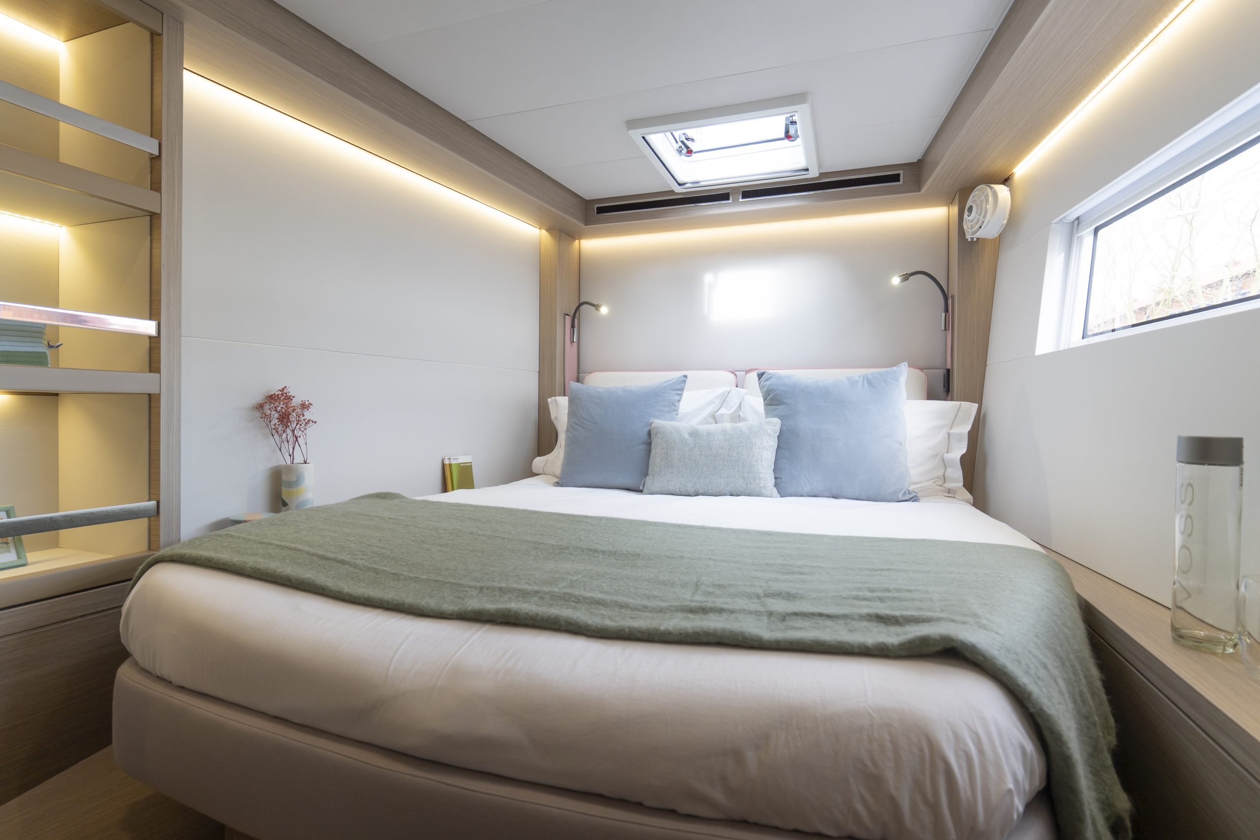 Su diseño optimizado ofrece una cubierta espaciosa con áreas de relajación y entretenimiento, vistas panorámicas y acabados de alta calidad que garantizan una estancia exclusiva a bordo. La distribución inteligente maximiza el confort, con interiores luminosos, cabinas elegantes y zonas de descanso perfectamente equipadas.